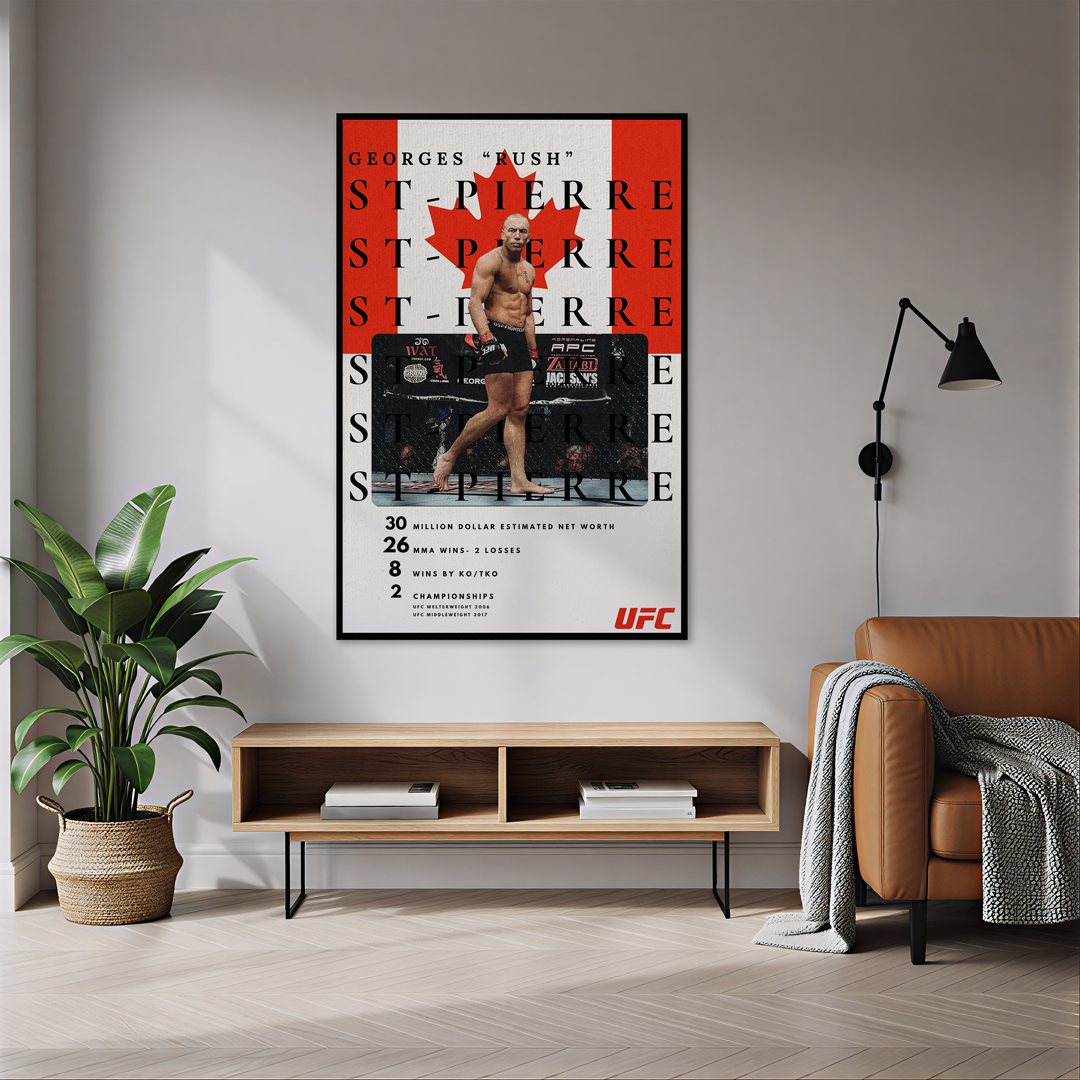 Georges St-Pierre’in teknik ustalığı, stratejik zekası ve ringdeki zarafeti, yüksek çözünürlüklü baskı ile bu özel halıda hayat buluyor. Canlı renkler ve detaylarla tasarlanan halı, hem zemin hem duvar dekorasyonu için mükemmel.